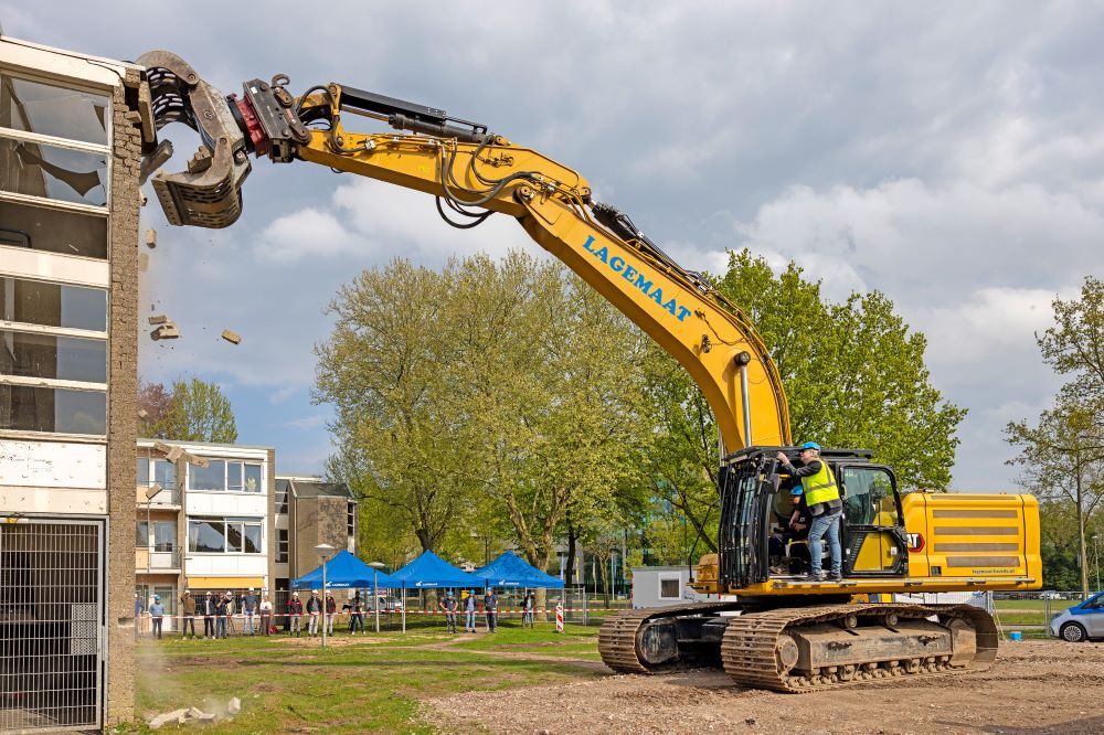 De sloop van het oude deel van woonzorgcentrum De Havezate in Zwolle is inmiddels volop bezig. Een paar weken geleden nam oud-bewoner Gerhard van Huet symbolisch het eerste stuk van de oudbouw weg. Vanuit een kijkwoning volgen de bewoners sindsdien de werkzaamheden op een veilige manier. |
